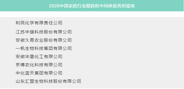 捷報頻傳!一帆生物斬獲2020中國農(nóng)藥行業(yè)優(yōu)秀原藥和中間體供應商 |