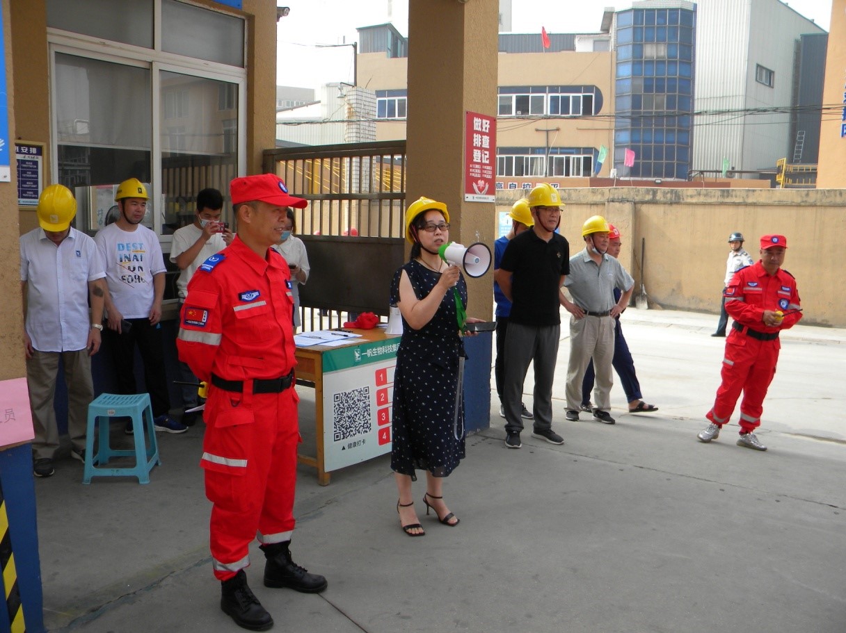 8:20在合成分公司門口集合由萬路森經理整隊,對演練項目及注意事項進行簡單介紹。董事長助理吳愛娥發(fā)表動員講話: