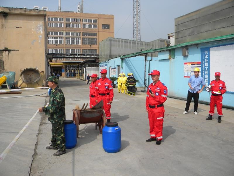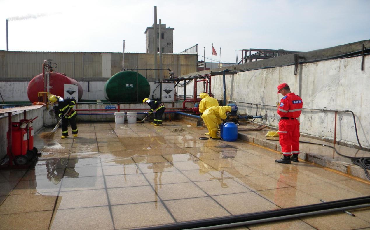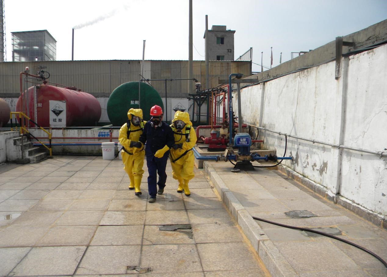 演練內容假設車間、罐區(qū)模擬發(fā)生?;罚}酸)泄漏事故,進行有針對性的應急處置,強化突發(fā)事件應急預案演練,促進預案規(guī)定的責任、制度、措施、應急救援物資的落實,鍛煉和提高現場生產員工對突發(fā)事件聯(lián)動應對能力,進一步形成統(tǒng)一指揮,反應靈敏、調度有序的突發(fā)事件應急救援機制。
