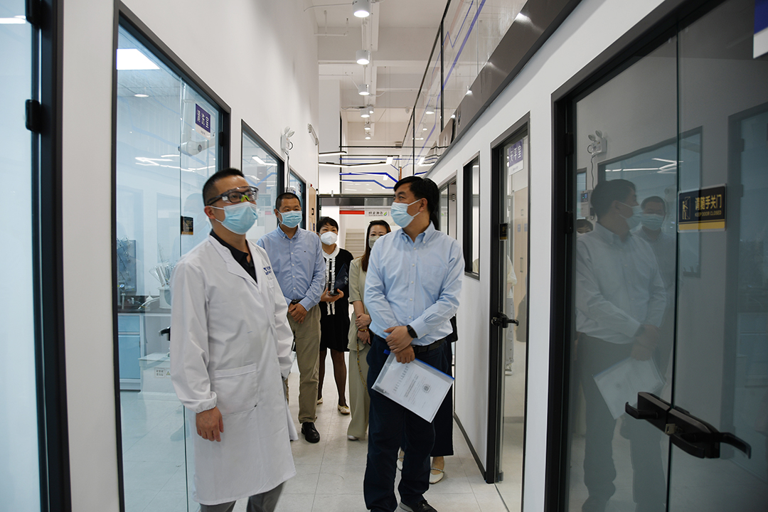 2022年6月10日,疫情剛復(fù)工后不久,上海市長寧區(qū)環(huán)保局趙冬兵書記,主管審批和監(jiān)測的莊瑛副所長,審批科吳薇科長一行冒著小雨來我司位于臨空經(jīng)濟園區(qū)的研發(fā)中心進行視察工作。