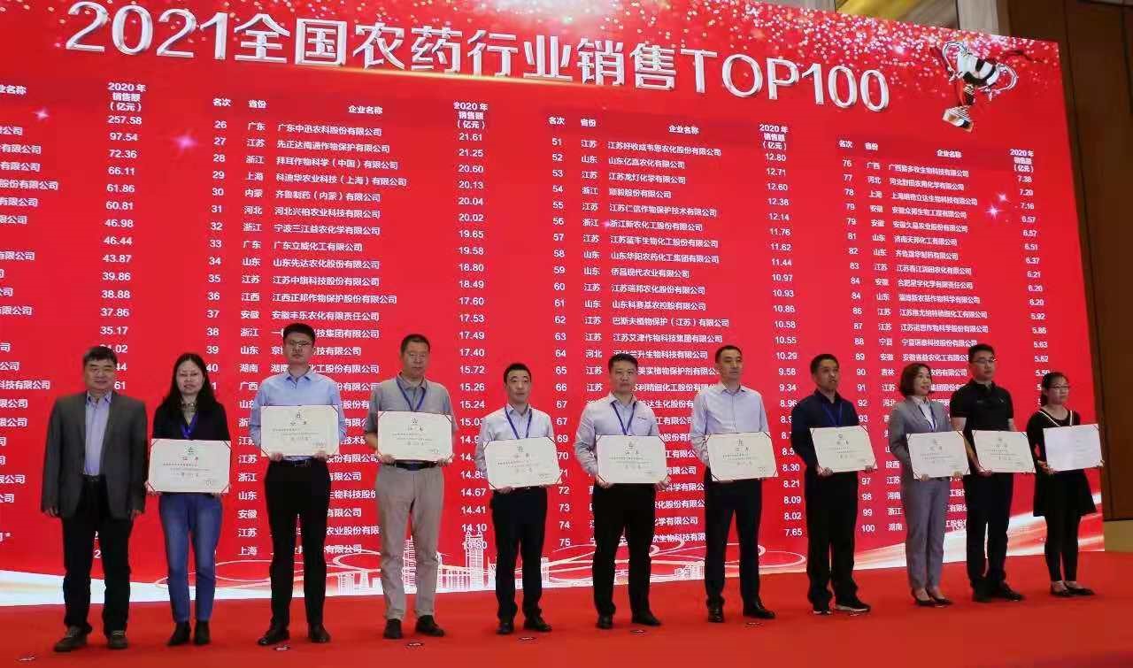 On June 10, Qingdao, Shandong, the 2020 TOP 100 China Pesticide Sales was grandly announced at the 7th Pesticide Industry Economic Operation Analysis Conference and Pesticide Industry Ranking List Press Conference. YIFAN ranks 38st in the 2021 TOP 100 China Pesticide Sales with a sales revenue of 1.75 billion, and achieved sales growth for many consecutive years. Mr. Sun Shubao, President of China Crop Protection Industry Association, Mr. Li Bin, Vice President of China Petroleum and Chemical Industry Federation, and Mr. An Liru, Vice President of China Crop Protection Industry Association /Vice President of Syngenta Group China and President of Plant Protection Business, presented awards to the winners.